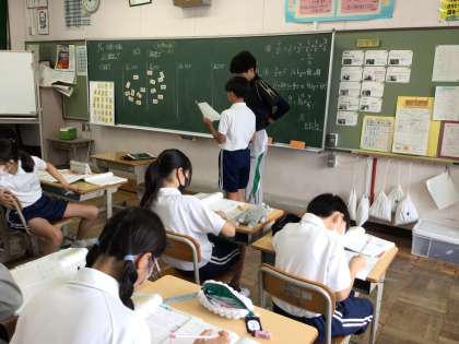 6/17 6年算数 公開日 2024/06/17 更新日 2024/06/17 各学年から 6年算数では、分数➗分数の習った部分の問題を解いていました。集中して解く姿が印象的でした。中学校でも分数➗分数の計算はよく使うので、完璧にできるようにしておきましょう。