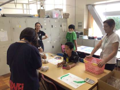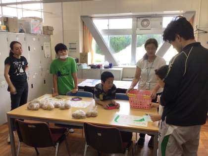 7、8組では、学校の畑で野菜を育てています。今日の太陽の時間に、自分たちが世話して収穫したジャガイモやきゅうりを販売しました。