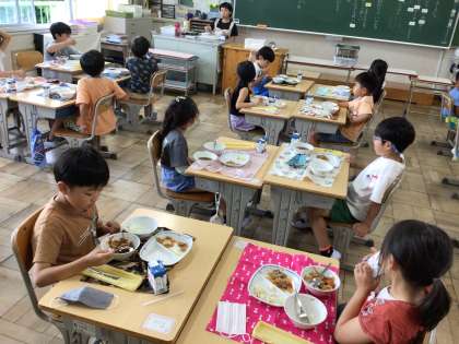 6/17 給食の時間4 公開日 2024/06/17 更新日 2024/06/17 特別活動 今日の献立はごはん、牛乳、とよたひまわりポークのしょうが炒め、大豆とじゃがいものサラダ、キムチ入りみそ汁です。 豊田市産の銘柄豚「とよたひまわりポーク」をしょうが炒めにしました。いつもより肉厚の豚肉を、味わって食べていました。