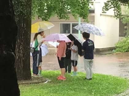 6/18 8組 公開日 2024/06/18 更新日 2024/06/18 各学年から 今日は朝から雨でしたが、傘をさして中庭に出ました。雨を感じながら、雨の音を聞いたり、雨にまつわる言葉を学習したりしました。