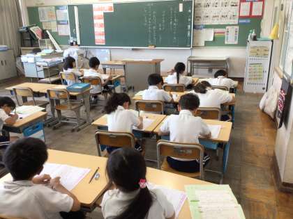 6/19 2年生 書写 公開日 2024/06/19 更新日 2024/06/19 各学年から 今日の2年生の書写では、「原稿用紙の使い方に気をつけて書こう」というめあてで学習しました。かぎや点、丸の位置に気をつけて、丁寧に書く姿が見られました。