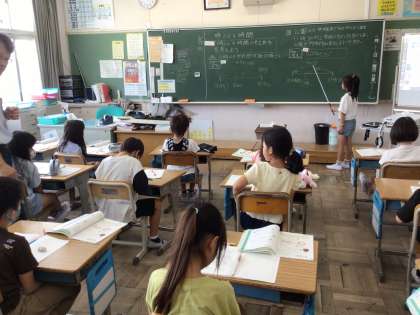 6/19 3年生 算数 公開日 2024/06/19 更新日 2024/06/19 各学年から 3年生算数では、「じこくと時間」の学習をしています。今日は、じこくと時間の求め方を説明したり、ノートに問題を解いたりしました。