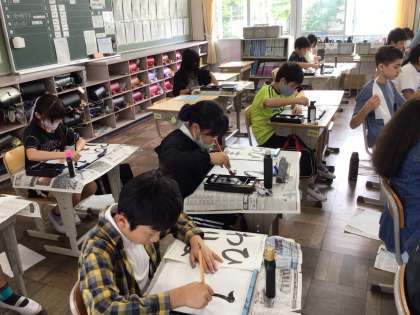 今日の6年生書写では「ひまわり」を書きました。半紙に4文字書くことは難しいですが、集中して丁寧に書く姿が見られました。