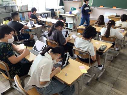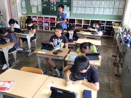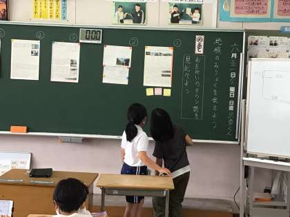 6/21 5年国語 公開日 2024/06/21 更新日 2024/06/21 各学年から 5年国語では、タウン誌が完成したので、「おたがいのタウン誌を見比べよう」というめあてで学習を進めていました。見比べて気づいたことを付箋に書いてどんどん黒板に貼っていました。