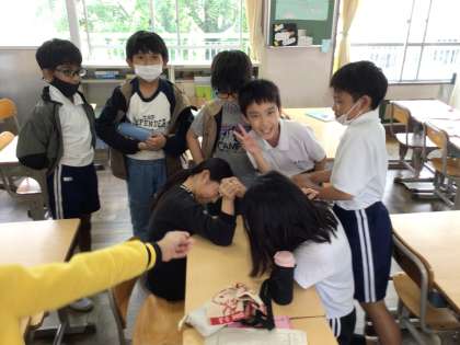 6/21 ふれあいの時間2 公開日 2024/06/21 更新日 2024/06/21 各学年から 午後の授業で使うのでしょうか、教材の入った段ボールを運んでいる子たちがいました。担任の先生のお手伝いなのかな? 外で走り回ることはできないので、教室で談笑していたり、腕ずもうで盛り上がっている子たちもいました。