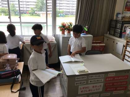 すばやく提出物を出したり、荷物を片付けたりすると、時間より早く読書が始まっていました。きちんとリズムができていて素晴らしいですね。