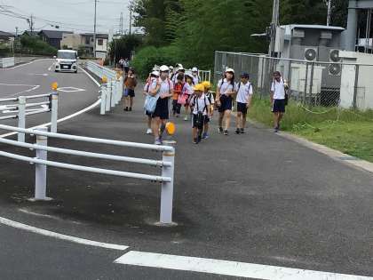 近所の人や先生に気持ちのよいあいさつをして登校していました。平井小学校校区は道が狭かったり、見通しの悪い交差点もあるので、通学団でかたまって気をつけて登下校をしていきましょう。