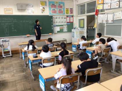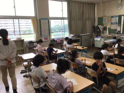 2年生の生活科では、野菜を育てて観察しています。今日は、しっかり観察することができるように、ポイントを絞って観察しました。大きさなら手のひらいくつ分か、どこに実ができているかなど観察しました。