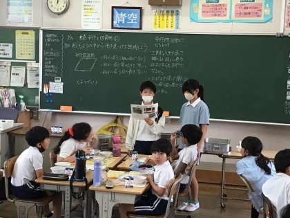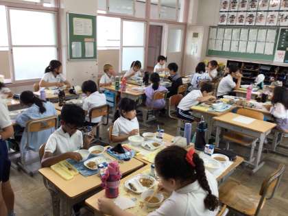 6/26 給食の様子 公開日 2024/06/25 更新日 2024/06/25 各学年から 今日も楽しく会食しています。おかわりをする子もたくさんいます。しっかり給食を食べてからだを作っていきましょう。また、給食の後半には、美化委員会の担当が学校ぴかぴか大作戦について説明をしてくれました。日頃の清掃から細かいところまで気を配ってきれいにしていきましょう。