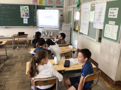 6/26 3年外国語活動 公開日 2024/06/26 更新日 2024/06/26 各学年から 今日はALTのエナ先生と一緒に学習を進めていました。今日のめあては、「相手に伝わるように自分の好ききらいを紹介しよう」です。ペアで会話練習をしていました。