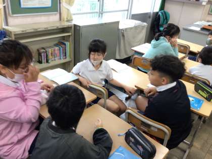 金曜日の朝はえがおタイムです。アドジャンをやって大盛りでした。互いの話を聞いて、頷くことが楽しい会話につながっています。