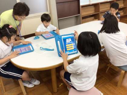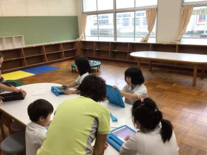 7/1 8組 公開日 2024/07/01 更新日 2024/07/01 各学年から 8組では、学習用タブレットを使って、ひらがなやカタカナの練習をしました。タブレットの問題を手でなぞったり、発音したりして練習しました。