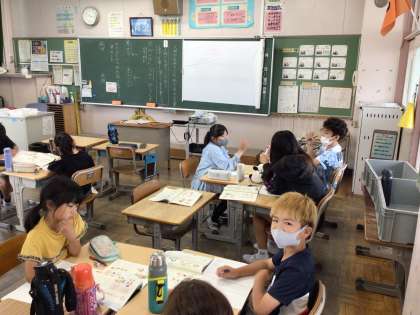 7/1 4年国語 公開日 2024/07/01 更新日 2024/07/01 各学年から 4年国語では、「人物の気持ちと行動を表す言葉を選んで文を書こう」というめあてで学習を進めていました。えがおトークを通して文について話し合っていました。