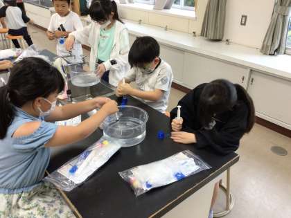 4年理科では、「閉じこめた水に力を加えると水の体積はどのようになるだろうか」について、理科室で実験を行っていました。先生に指示された量の水をピストンに入れて力を加えていました。実験結果はどうだったかな?