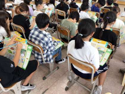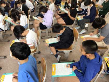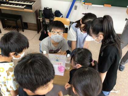 7/2 水道に関する説明2 公開日 2024/07/02 更新日 2024/07/02 各学年から 説明を聞いて真剣にメモをとる姿勢がよかったです。水道水に塩素が入っていることを確かめる実験では、水の色がピンクに変わったので驚いていました。休憩時間にさっそく覗きこんで見ている子たちもたくさんいました。