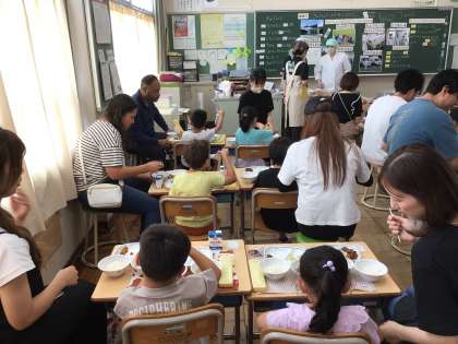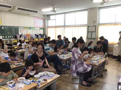親子で給食を食べました