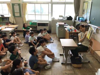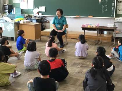 3、4年の読み語りの様子です。どの学年も話に聞き入っていますね。