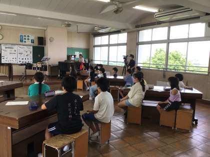 5年生音楽で打楽器体験をしました。プロの方の演奏を聞いたり、自分たちで体験したりしました。