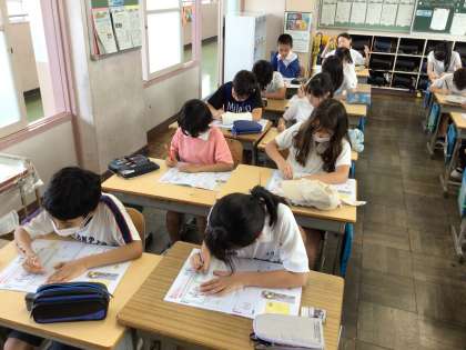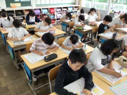 7/4 4年書写 公開日 2024/07/04 更新日 2024/07/04 各学年から 4年1組の書写も硬筆なりました。毛筆で練習した「林」「雲」「左右」について、同じように字のバランスや、書き順など確認しながら鉛筆で書きました。黙々と練習する姿がとても良かったです。