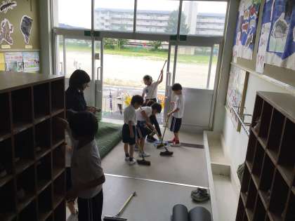 7/4 ぴかぴか大作戦 公開日 2024/07/04 更新日 2024/07/04 各学年から 今週中に各学級で分担された箇所を大掃除するというものです。1年2組は下駄箱付近が割り当てになっていて、学級みんなで協力してきれいにしていました。自分たちの生活の場をきれいに保つことは大切ですね。