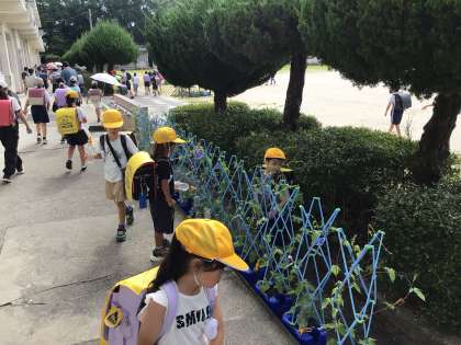 7/5 登校風景 公開日 2024/07/05 更新日 2024/07/05 各学年から 今日は朝から気温が高く、汗を拭きながら登校する子たちの姿が見られました。アサガオに水をたっぷりあげてツルの伸び具合や、花が咲いた様子を観察をしてから教室に向かっていました。
