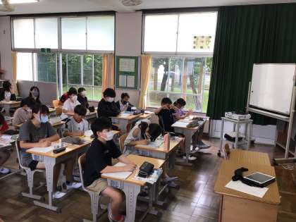 6年社会では、天皇中心の国づくりについて勉強をしています。歴史上の人物が何人も出てくるので大変ですが,説明を聞きながらノートをとっていました。