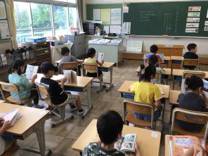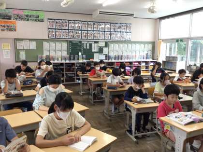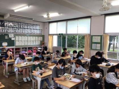 時間になると静かに読書が始まります。落ち着いた学校生活の始まりです。姿勢よく本を読む姿もいいですね。
