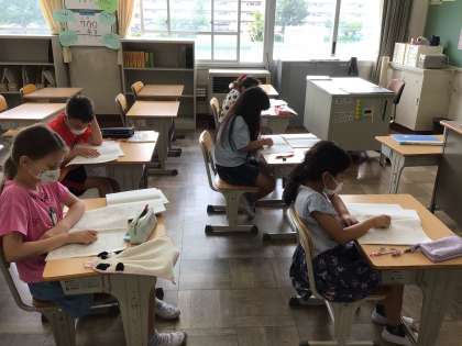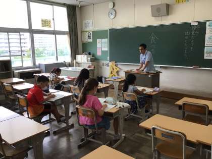 3年生国際学級 (国語) 「しっかりと野菜を食べよう」の二つの文章を読み比べました。