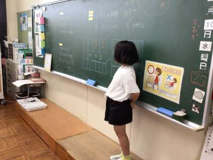 8組算数では、お金の計算をしました。一人ずつ問題を解いたり、黒板に出て問題を解いたりしました。