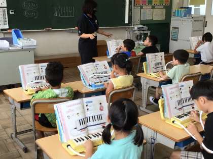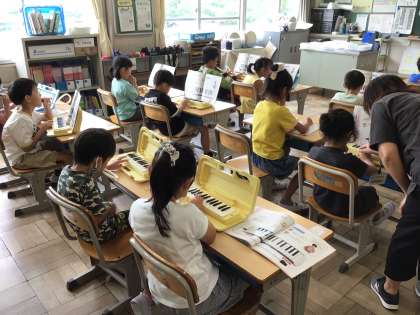 7/10 1年生 音楽 公開日 2024/07/10 更新日 2024/07/10 各学年から 1年生音楽では、鍵盤ハーモニカを使って学習しています。大きな音を出したり、小さな音を出したりして音を楽しみました。