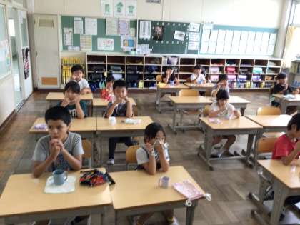 給食の片付けを素早く済ませて歯みがきの準備をしていました。今日もリズミカルな曲に合わせて歯みがきです。