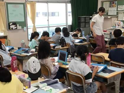 7/12 4年生 理科 公開日 2024/07/12 更新日 2024/07/12 各学年から 4年生理科では、星や星座の学習をしています。今日は、学習用タブレットを使って、星の動きを見たり、夏の大三角を見つけたりしました。