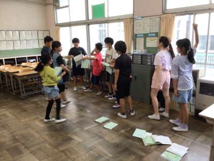 7/12 5年生キャンプ準備 公開日 2024/07/12 更新日 2024/07/12 各学年から 5年生は9月のキャンプに向けて、準備をしています。今日は、グループごとに、キャンプファイヤーで行うスタンツの練習をしていました。