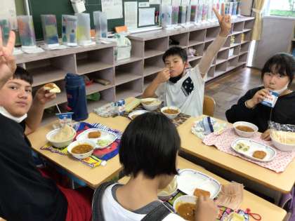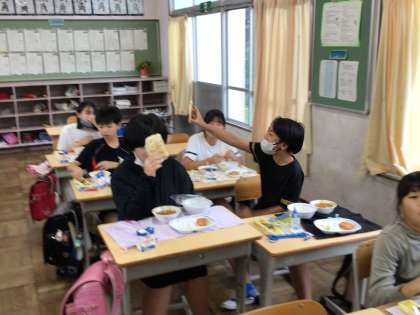 今日の給食はチキンカレーとナンです。たくさんおかわりをして会食していました。6年生に「中学校になるとパンの大きさが変わるって知っていますか?」というと知らなかったようで驚いていました。