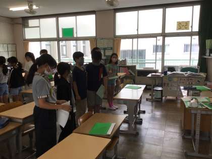 7/16 5年生総合的な学習(キャンプに向けて)1 公開日 2024/07/16 更新日 2024/07/16 各学年から 5年生は、キャンプに向けてグループごとに、準備をしています。司会の練習や、スタンツの練習など、自分たちで考えながら、活動しています。