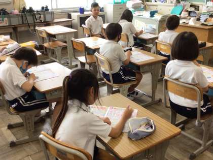 7/16 3年生国語1 公開日 2024/07/16 更新日 2024/07/16 各学年から 今日の3年生国語では、ローマ字の学習をしました。大文字や小文字で書いたり、単語をノートにかいたりして練習しました。