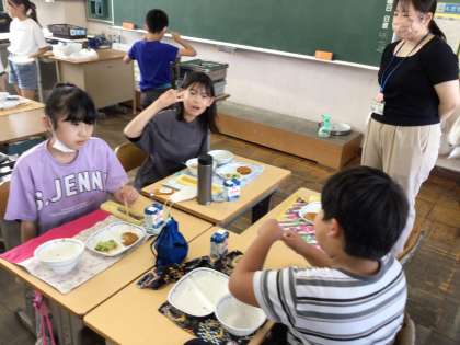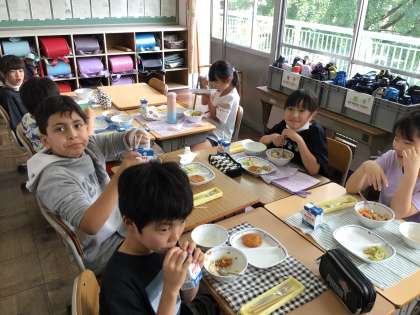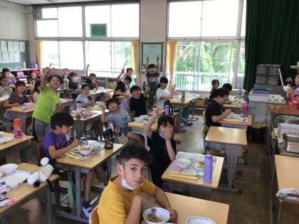 今日の献立は豚丼でした。美味しかったと喜びの声があふれています。楽しく会食をしていました。