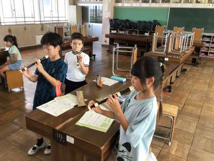 3年音楽では、「ゆかいな木きん」という曲を歌とリコーダーの2つのパートに分かれて練習をしていました。どちらのパートもリズムにのって楽しく歌ったり、吹いたりしていました。