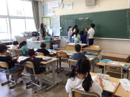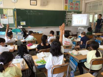 7/18 3年生算数 公開日 2024/07/18 更新日 2024/07/18 各学年から 3年生算数では、少人数に分かれて授業を行いました。今日は、棒グラフのかき方について学習しました。グラフをかくときには、どのようなことをどんな順番でかくかも、学習しました。