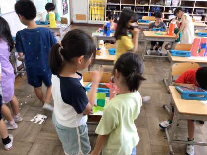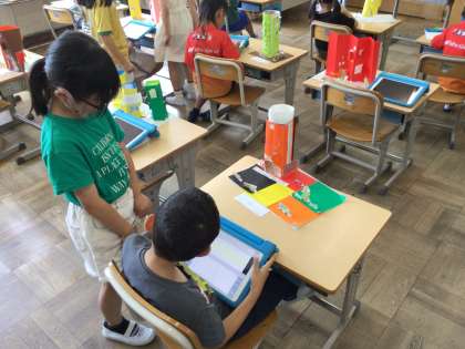 7/19 2年図工 公開日 2024/07/19 更新日 2024/07/19 各学年から 2年図工「窓からこんにちは」で作った作品を互いに見合って感想を発表ノートに書き込んでいました。色、窓のデザインなど工夫されていて素晴らしい作品でした。
