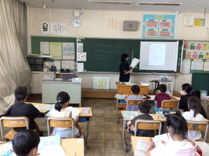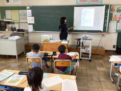1年学活で、夏休みの宿題について説明を受けていました。算数の音声計算についてもやり方を説明していました。繰り返し練習することで計算がはやく正確にできるようになります。夏休み中のお子さんの学習の取り組みについて、見守りやサポートをお願いします。