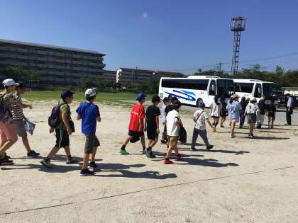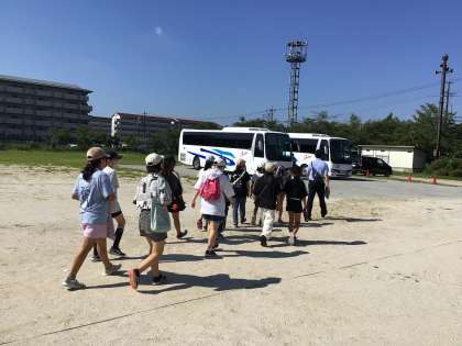 さあ、バスで出発です。市民文化会館へ出かけます。