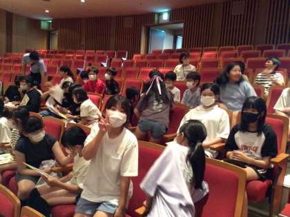 7/22 こころの劇場4 公開日 2024/07/22 更新日 2024/07/22 各学年から 開演は10時です。しばらく時間があるので、友だちと談笑しながら待機しています。劇団四季のエルコスの祈りというファミリーミュージカルです。