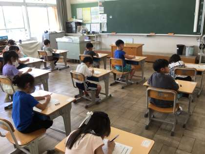 夏休み中に勉強してきたことのテストを行いました。ひらがなテストをみんな真剣に考えて書くことができました。