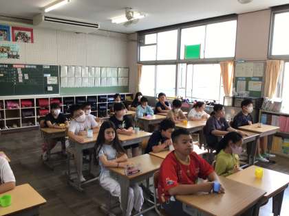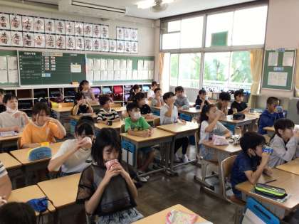 9/5 朝の会 公開日 2024/09/05 更新日 2024/09/05 各学年から 「おはようございます」と元気なあいさつで朝の会が始まりました。木曜日なので、フッ化物洗口を行いました。軽快な曲に合わせて、ブクブク洗浄をしました。