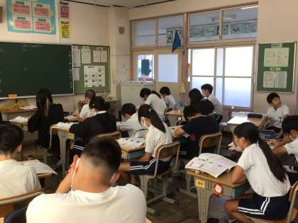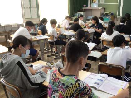 6年生理科では、月と太陽の動きについて学習をしています。今日は、確かめをし、ノートにまとめました。