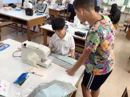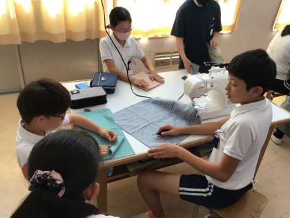 被服室での実習の様子です。どんなトートバッグができあがるのかな?