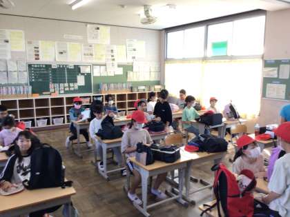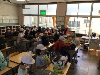 5年生は今日からキャンプです。大きな荷物を教室に運んで待機していました。ワクワクした表情で溢れていました。