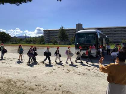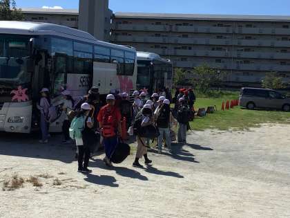 9/11 5年キャンプ バス出発 公開日 2024/09/11 更新日 2024/09/11 各学年から 出発式が終わるとすぐにバスに乗車です。すばやく移動したり、大きな荷物をトランクに乗せたりするなど、テキパキ動く姿が良かったです。