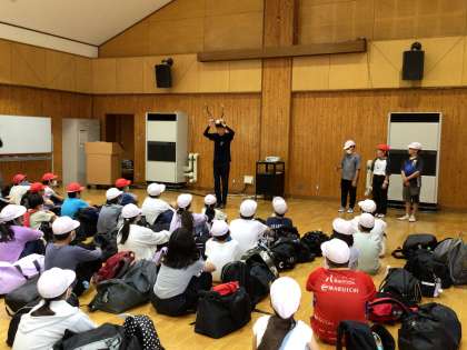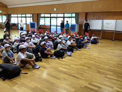 野外センターのほおのきホールで入所式を行いました。所長さんのお話や校長先生のお話を聞きました。わくわくする気持ちを切り替えて、真剣に話を聞く姿はさすが5年生でした。